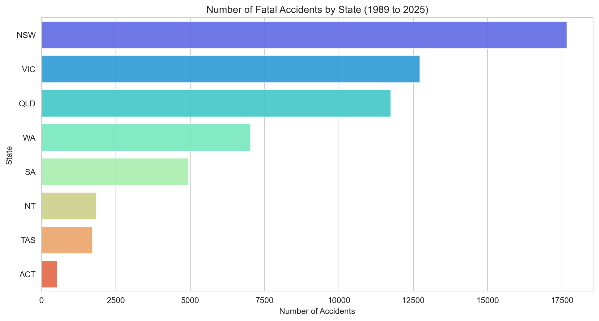 New South Wales, Victoria, and Queensland account for more than 80% of all fatalities.