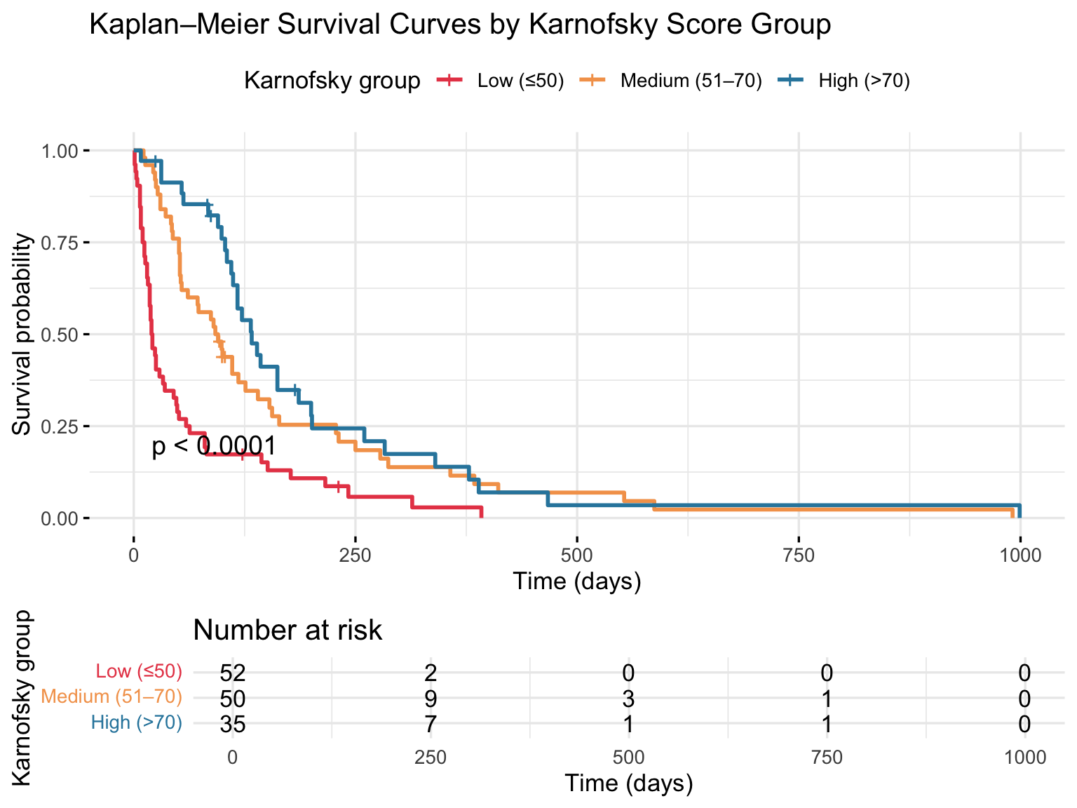 Plot 2 — Survival by Karnofsky Performance Score